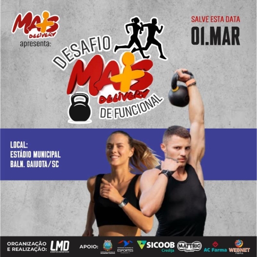 1 O DESAFIO Mais Delivery de FUNCIONAL será realizado no dia 01 de março de 2026 ,é um circuito de corrida com exercícios e obstáculos , baseado nos mais diversos desafios de treinamentos funcional.